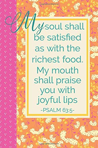My Soul Shall Be Satisfied As With The Richest Food 6x9 Journal Lined Writing Notebook 120 Pages Orange With Pink Flowers And Polka Dots And Psalm 63 5 Encouraging Bible Verse